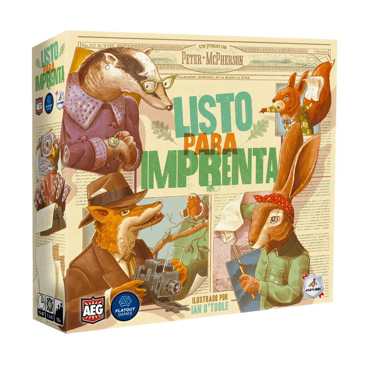 Listo para imprenta es un juego de colocación de losetas en forma de rompecabezas sobre periódicos, creado por Peter McPherson y ambientado en un encantador entorno forestal ilustrado por Ian O’Toole.