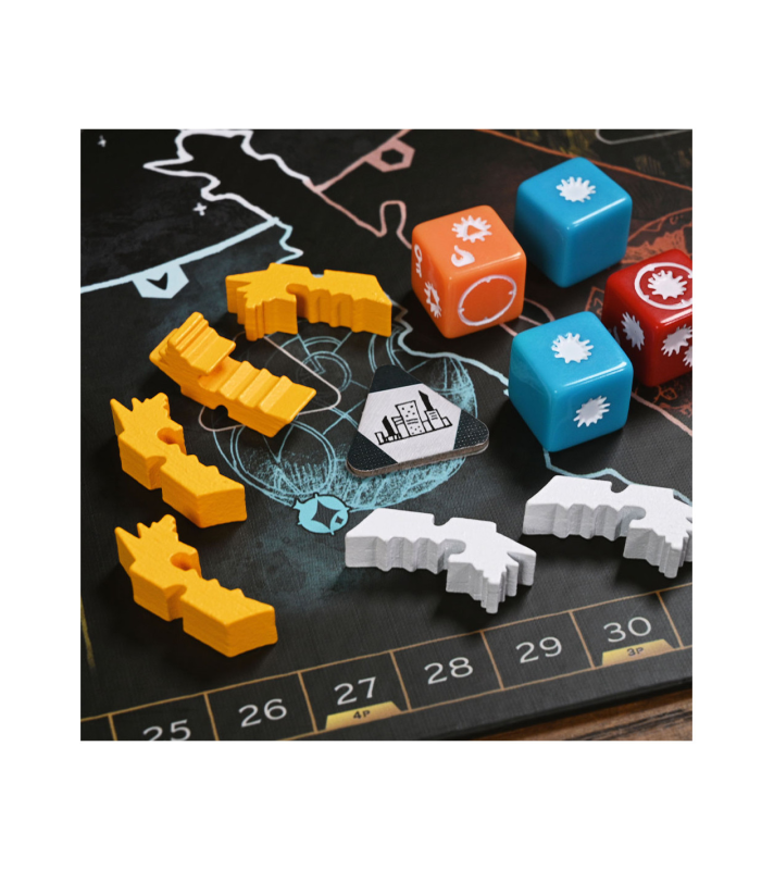 Cada juego incluye cien barcos y agentes de madera, 18 dados personalizados grabados, un hermoso tablero de seis paneles y una gran cantidad de cartas con más de 60 ilustraciones únicas.