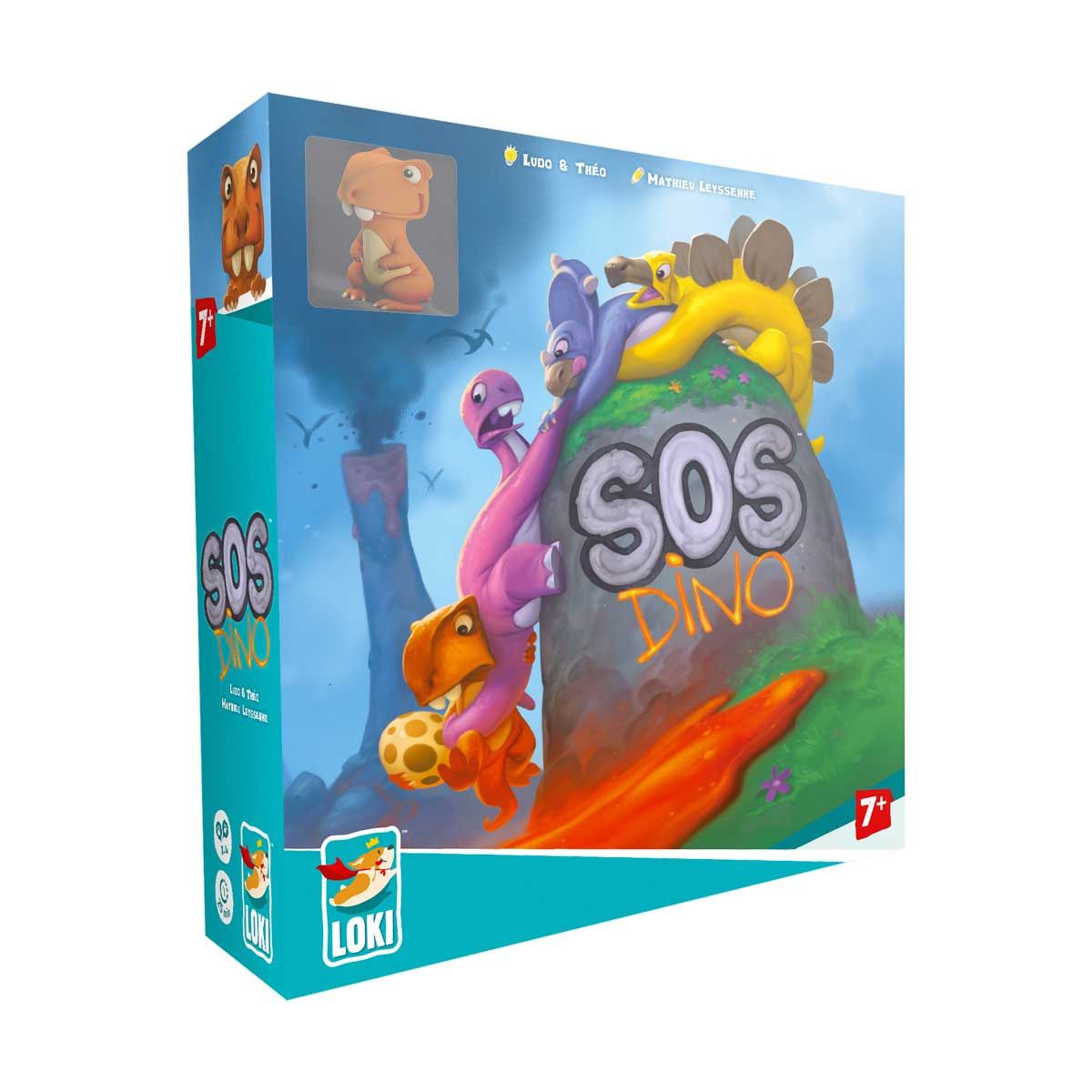 SOS Dino es un juego cooperativo. Los jugadores deberán mover los 4 dinosaurios a salvo ya que la lava ha llegado a su hogar.El juego contiene tiernas figuritas de dinosaurios que deberás ayudar escapar de la lava que fluye. En tu turno, deberás tomar una loseta de una bolsa y ponerlo sobre el tablero. Esta representa la lava y a la vez se ejerce la acción que indique la loseta (moverse, sacar otra loseta, etc.). A lo largo del juego, moverás cada dinosaurio a su lugar seguro: las montañas y de paso deberás coleccionar los huevos que están en sus nidos para salvarlos.